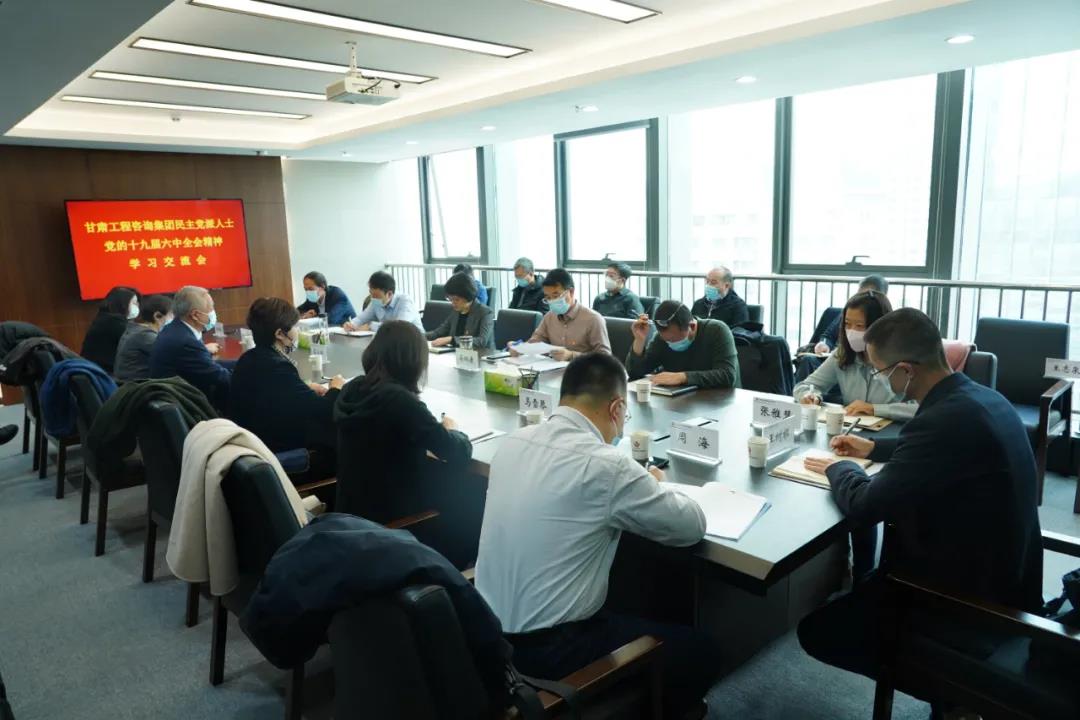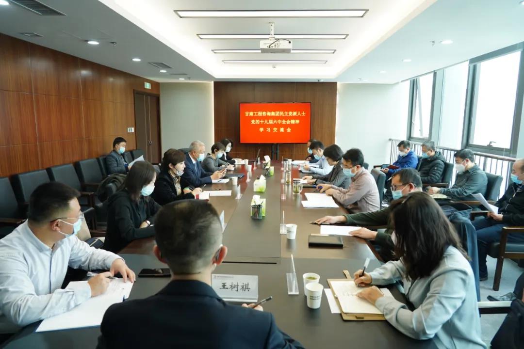 11月19日,甘肃工程咨询集团召开民主党派人士党的十九届六中全会精神学习交流会,学习了中国共产党第十九届中央委员会第六次全体会议公报和习近平总书记关于统一战线重要论述,民主党派人士代表进行了党的十九届六中全会精神学习交流发言。受集团公司党委书记、董事长宋忠庆委托,党委副书记王春燕主持会议,集团公司党委宣传部、党群工作部负责人及各子公司领导班子、中层干部中民主党派人士代表参加会议。