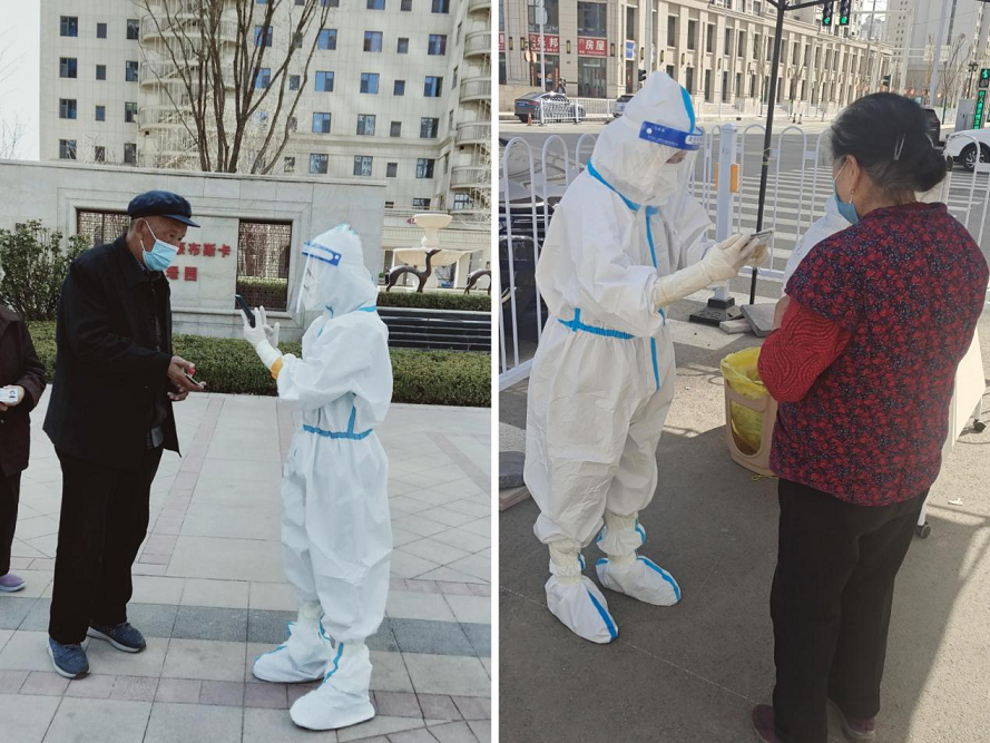 “作为一名党员,面对严峻复杂的疫情防控形势,我们应该携起手来,为遏制疫情扩散蔓延、维护社会大局稳定作出应有贡献”。张婧作为第一个主动请缨参加志愿服务的党员,是这样说的,也是这样做的。行动就是承诺,在向交通监理公司报备后,张婧第一时间联系所在社区,展开了体温测量、信息登记、检测指导、秩序维护等各项疫情防控工作,全心投入,当起了疫情防控工作战线上的“服务员”。