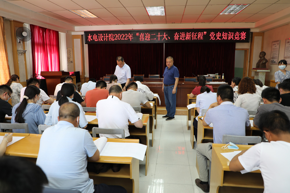 为迎接党的二十大胜利召开,热情讴歌党的光辉历程,弘扬党的优良传统,保持和发扬党的先进性,持续推进党史学习教育,引导广大党员干部职工一起学党史、感党恩、跟党走, 6月17日,甘肃省水利水电勘测设计研究院有限责任公司举办了主题为“喜迎二十大 奋进新征程”的党史知识竞赛活动,各党支部党员、预备党员及入党积极分子80余人参加竞赛,党委副书记雷旺义现场观赛指导。