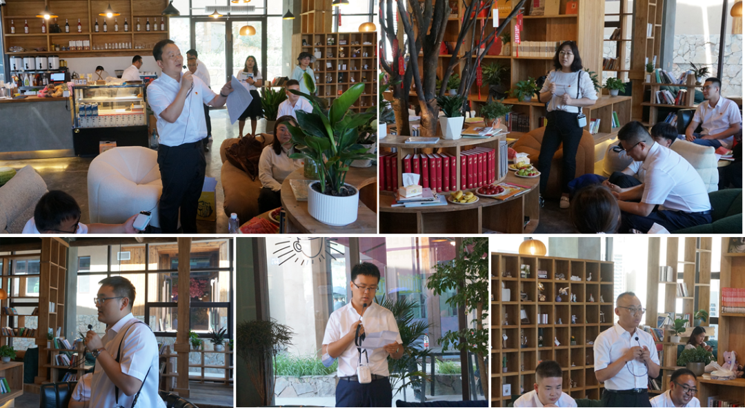在栖云小镇书吧开展的“一心永向党,喜迎二十大”的交流研讨会上,罗尧同志代表第五党支部作主题发言。他首先对参加本次主题党日活动的同志们表示欢迎和感谢,然后为大家深入讲解并解读了我省第十四次党代会提出的“一核三带”省域发展新蓝图和“四强”行动相关要点,并倡议每一位规划工作从业者应当加强政治学习,提高政治站位,在全面把握全省重大政治任务的前提下,与时俱进,紧密联系实际开展规划设计工作,并着眼长远、聚焦重点,充分发挥技术优势,助力全面推进甘肃经济社会高质量发展。党委办公室主任樊晓丹同志作了“高度重视党建工作,推动党建工作和业务工作深度融合”的主题发言。她首先肯定了第五党支部一直以来在党建工作中取得的成绩,并鼓励支部应当百尺竿头更进一步,积极打造党建品牌,不断提升基层党建工作的引领力、号召力和吸引力。团委书记刘斌同志以《回顾百年团史,汇聚青春力量》为题,讲授了一堂生动的党课,带领大家一起走进百年团史,追寻信仰之光,勇担青春使命,倡议广大团员应当紧跟党走,担时代之责,做新征程的奋进者、开拓者和奉献者,传递青春力量,绽放青春芳华,用青春和热血书写新时代壮丽篇章。其他党员及入党积极分子也从自身学习和工作实际出发,分别就基层党建、政治理论学习、党员先锋模范作用发挥等方面交流了各自的所思所感。