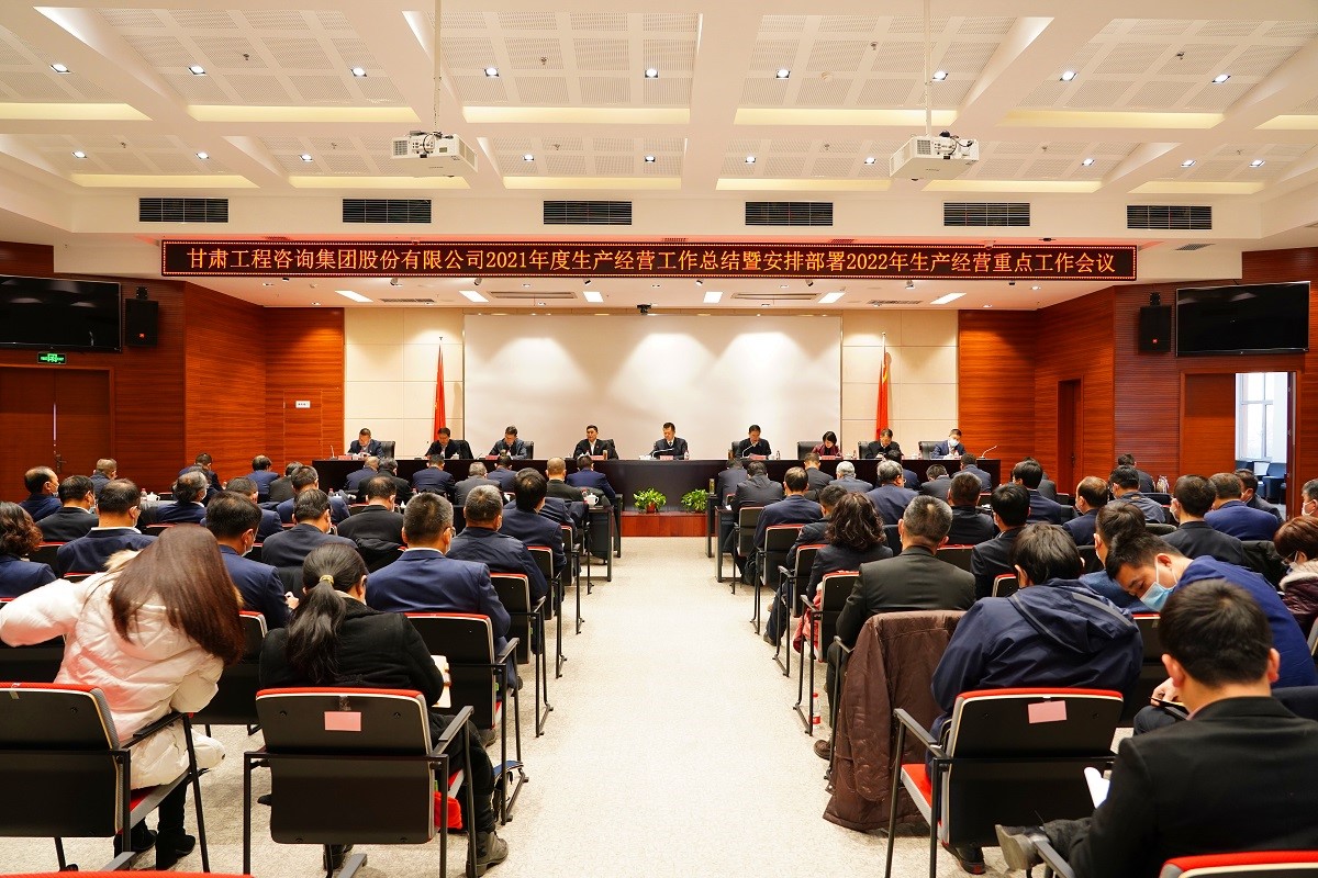 2月15日,甘肃工程咨询集团召开2021年度生产经营工作总结暨2022年度安排部署工作会议。会上,党委副书记、总经理马明总结2021年集团公司生产经营工作情况,安排部署2022年生产经营重点工作;党委委员、副总经理乔祯林,财务总监赵登峰分别总结了2021年度安全生产、财务管理等工作,并对2022年度重点工作做了安排部署;党委书记、董事长宋忠庆作总结讲话。乔祯林主持会议,集团公司领导班子成员、相关部门负责人,各子公司党委书记、董事长(执行董事)、党委副书记、经理层成员及生产经营、财务、技术质量部门负责人参加会议。