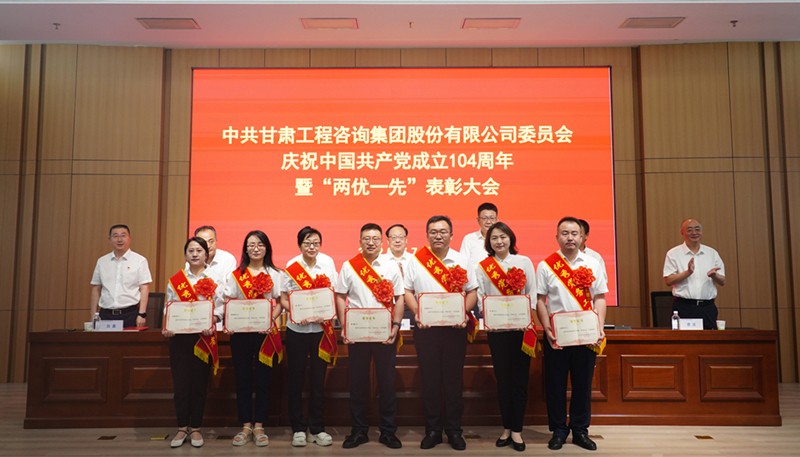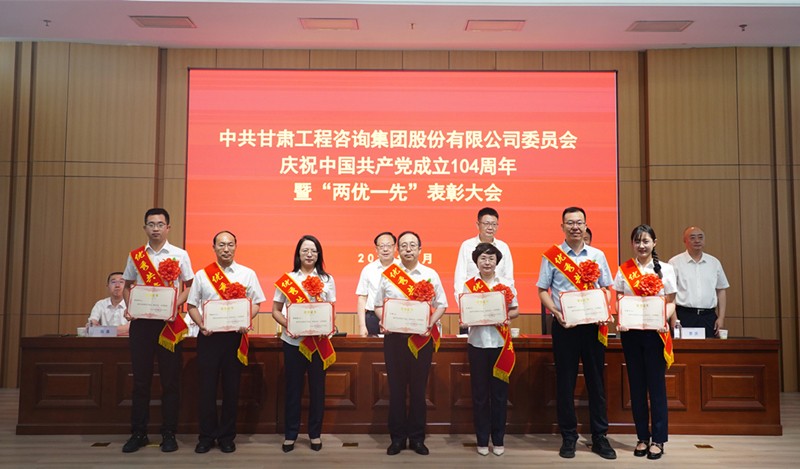 7月1日,甘肃工程咨询集团召开庆祝中国共产党成立104周年暨“两优一先”表彰大会,回顾党的辉煌历程,弘扬伟大建党精神,全面展示集团党建工作成效和党员干部昂扬风貌,激励各级党组织和全体党员凝心聚力、担当作为,奋力推动集团公司高质量发展迈向新台阶。集团公司党委书记、董事长张佩峰出席并讲话,总经理、董事陈一夫及在家领导班子成员出席,党委委员、副总经理孟康荣宣读表彰决定,纪委书记、监察专员师宗正主持会议。