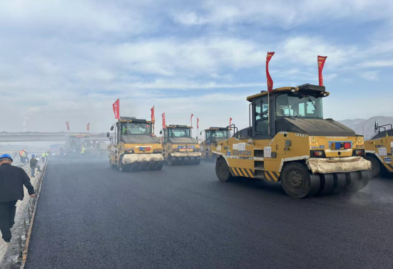 田间的风醇厚柔润,压路机上随风飘摇的旗帜迸发出一阵阵呐喊声,为道路沥青中面层铺筑加油助威。
