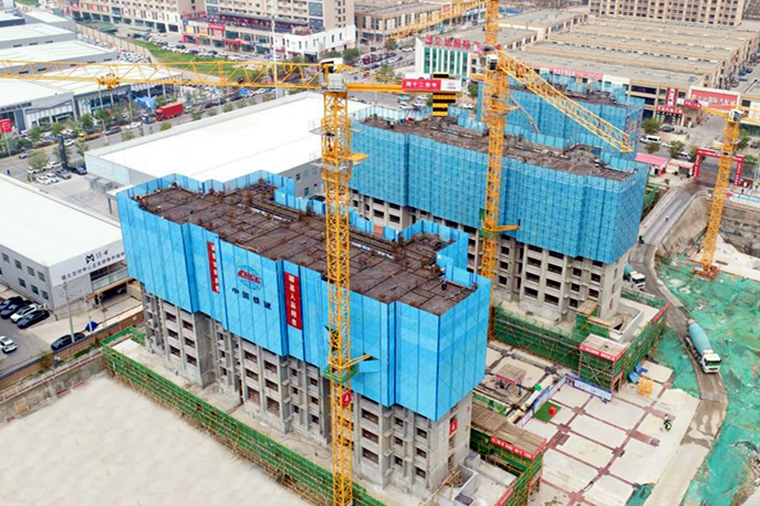 蔚蓝天空下,脚手架错落有致,诉说着奋进与梦想的故事。