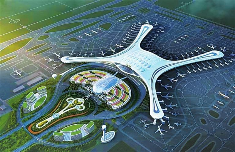 航站楼基础工程中井桩数量高达10181根,钢结构由3.8万个杆件拼装而成,需设置50多个吊装提升点,最大提升高度18米。