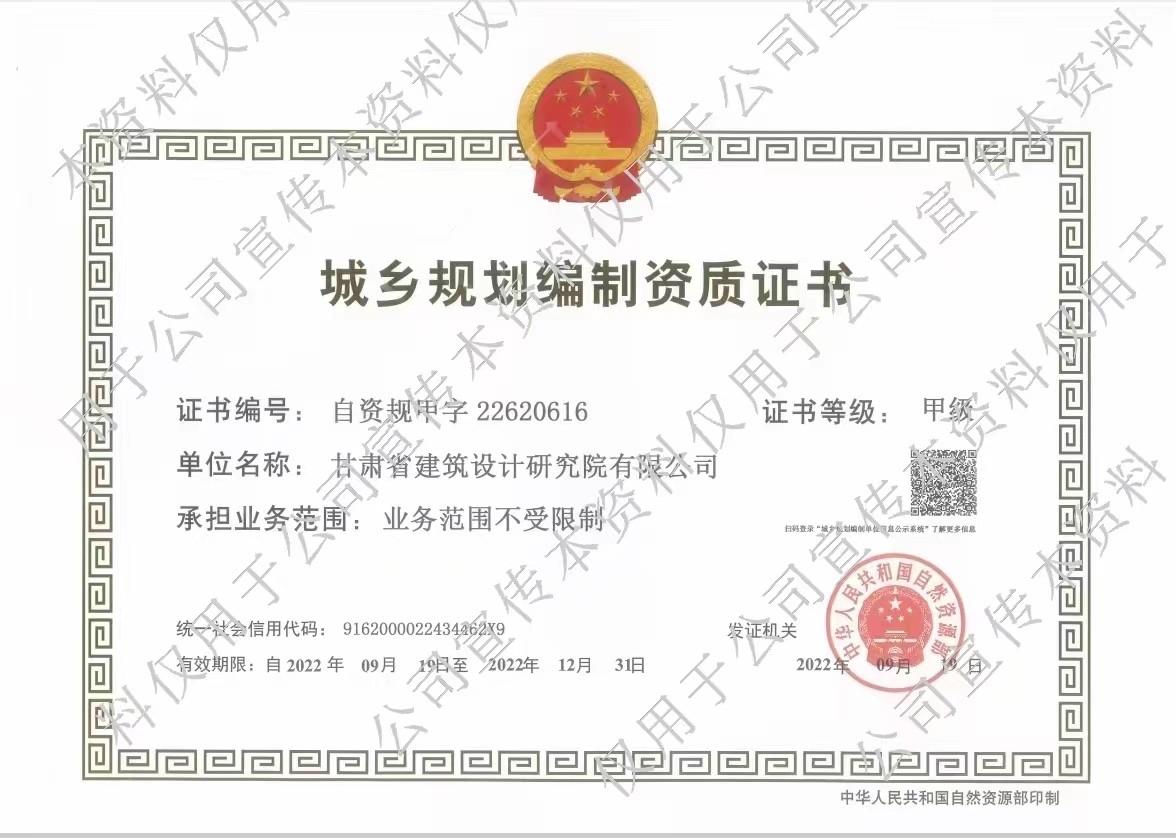日前,国家自然资源部发布《自然资源部关于2022年第六批城乡规划编制单位甲级资质认定的公告》,甘肃省建筑设计研究院有限公司名列其中,喜添城乡规划编制甲级资质。