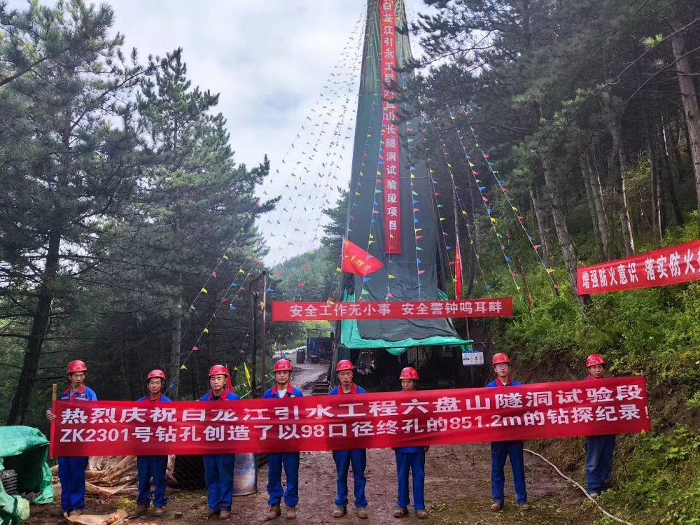 近日,省水电设计院勘探公司在白龙江引水工程六盘山长隧洞试验段项目ZK2301钻孔施工中,以98mm口径顺利完成851.2m钻进任务,刷新了水电设计院在该口径终孔钻探原575m后最深纪录,极大地提振了干部职工的雄心壮志。