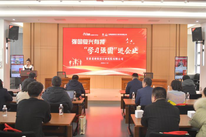 近日,由甘肃省委讲师团指导,“学习强国”甘肃学习平台及甘肃新媒体集团每日甘肃网联合省建筑设计院,共同开展了强国复兴有我、“学习强国”进企业答题竞赛活动。甘肃日报报业集团每日甘肃网总编辑、总经理李茂恒,甘肃日报报业集团每日甘肃网副总编辑李小龙参加,省建筑设计院党委书记李向军出席活动并致辞。