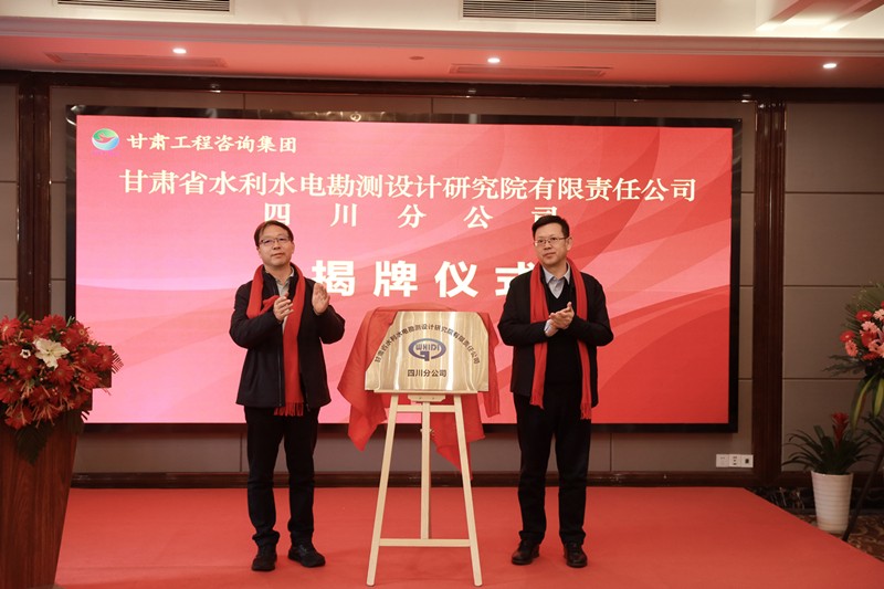 2月28日上午,甘肃省水利水电勘测设计研究院有限责任公司四川分公司揭牌仪式在成都举行。甘肃省水利厅二级巡视员杨忠琪,甘肃工程咨询集团党委委员、副总经理苟海龙出席并讲话。